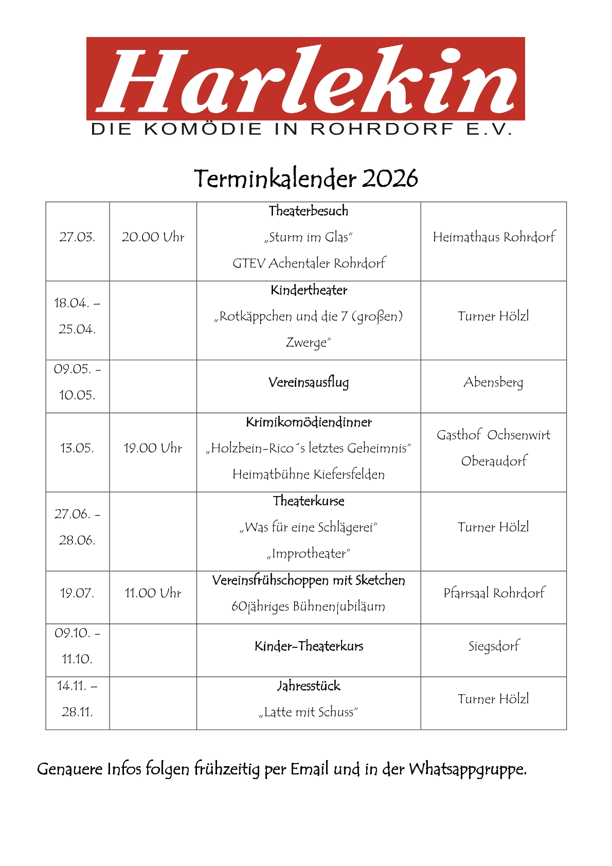 Wer uns gerne näher kennenlernen möchte ist herzlich zu den verschiedenen Terminen eingeladen. Einfach eine kurze Mail an info@harlekin-online.de schreiben. Wir freuen uns auf euch!